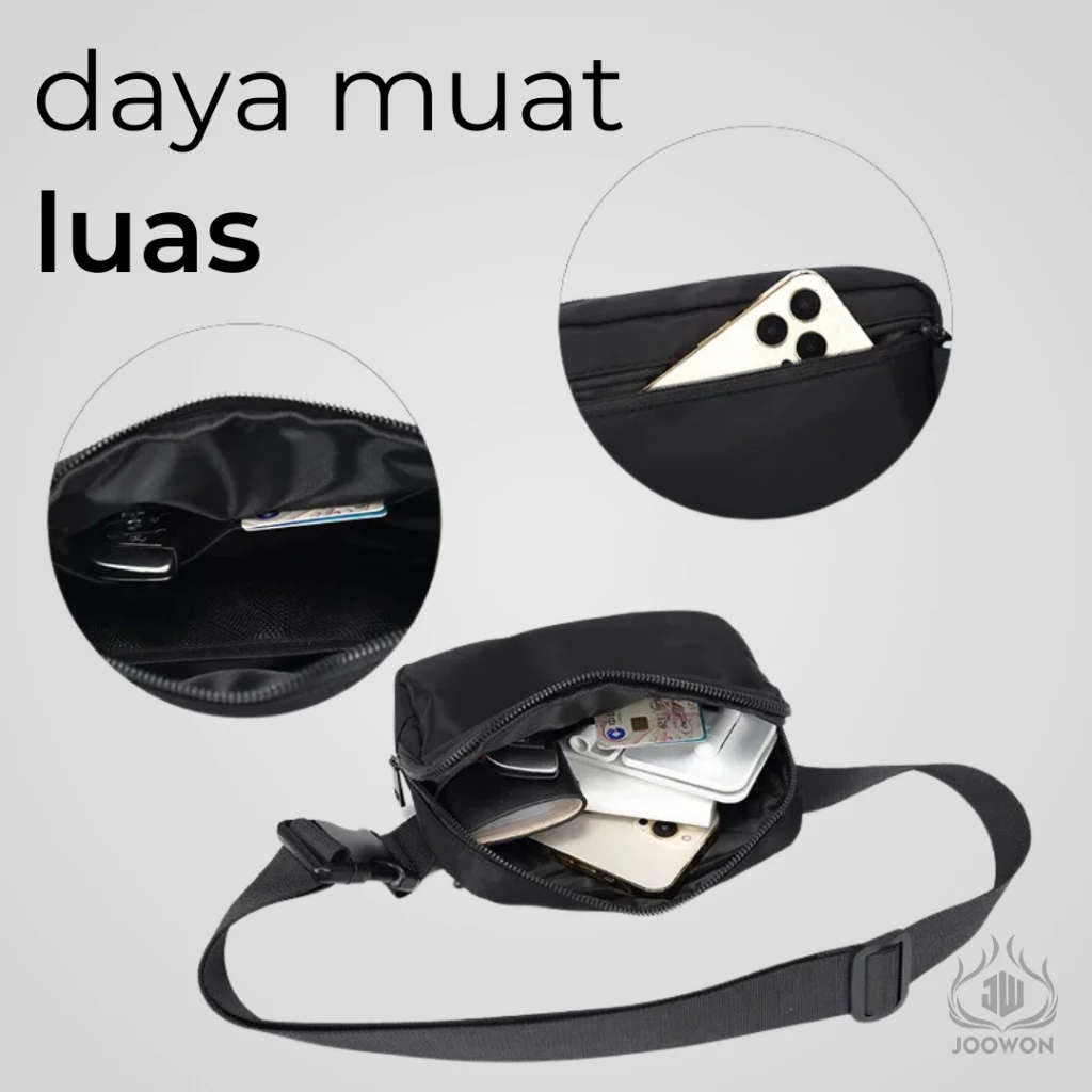 Tampil elegan di segala aktivitas dengan desain fleksibel yang nyaman dipakai sebagai tas dada atau pinggang.